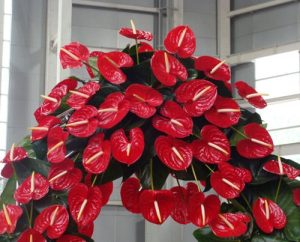 • گل آنتوریوم : رنگ قرمز این گل نشانه عشق و علاقه به متوفی را میدهد و رنگ سفید این گل نشانه پاکی و بی‌گناهی فرد فوت شده را نیز میدهد. قیمت این گل نسبت به گل‌های دیگر بالاتر میباشد.